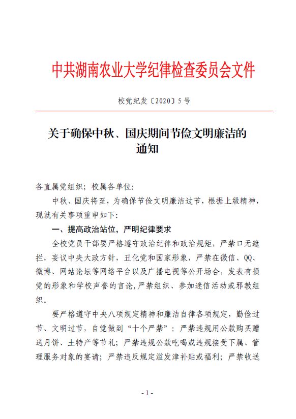 关于确保中秋、国庆期间节俭文明廉洁的通知